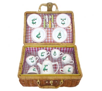 Vilac - 9737 - Bécassine - Dînette Bécassine?Une jolie mallette en osier qui invite au pique nique ! Avec 4 tasses, 4 sous tasses, 1 sucrier, 1 pot de lait, 1 théière et 4 petites cuillères. La vaisselle est en porcelaine. Dimensions : 30 x 21 x 15 cm. Dès 3 ans